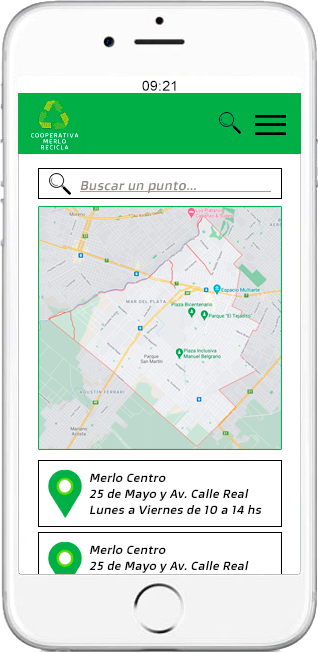 Esta es la sección de "Puntos de reciclaje".