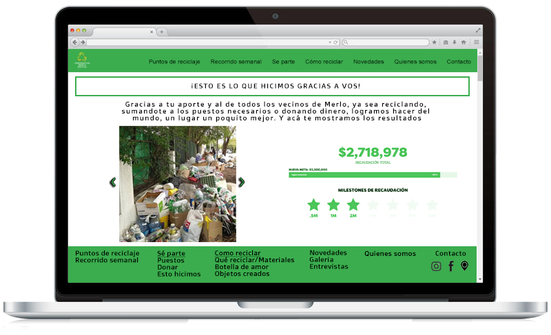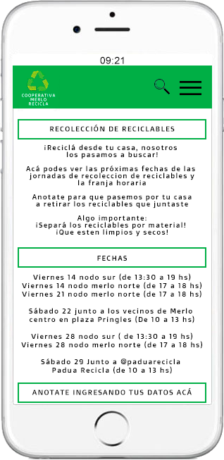 La actividad principal de la Cooperativa hoy en día es la Recolección diferenciada de residuos a través de jornadas de recepción de éstos, organizada por un grupo de vecinas voluntarias y con mucha conciencia ambiental en varios puntos de Merlo y también junto a la Asociación Civil Padua Recicla quienes fueron motivadores principales de esta nueva modalidad de trabajo en la comunidad.