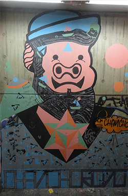 Graffitti ubicado en escalera de emergencia 3°Piso en frente al río.— Chancho