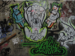 Graffitti ubicado en escalera de emergencia 2°Piso en frente al río.— Kinky