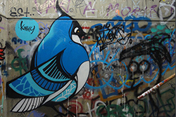 Graffitti ubicado en escalera de emergencia 3°Piso en frente al río.— Ingrid Newkirk