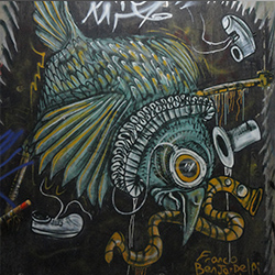 Graffitti ubicado en la escalera entre el subsuelo y el primer piso.— Nazza