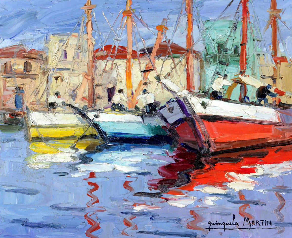 Empezo dibujando y pintando escenas que el veia en su dia a dia en el puerto con sus colores. El observaba a los trabajadores del puerto durante el dia en busca de inspiracion para sus cuadros. A diferencia de otros artistas, Quinquela usaba su espatula para pintar en vez de un pincel, asi que mirando sus cuadros de cerca, podias ver los trazos con claridad. A Quinquela Martín es considerado el pintor de puertos y es uno de los pintores más populares del país.